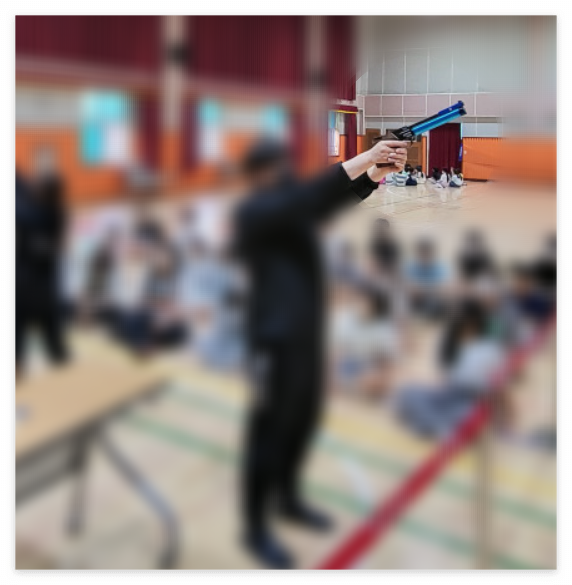 교육에 사용되는 총은 레이저 공기권총 파르디니(PARDINI) 총알이 레이저로 바뀐 것을 빼고는 대표선수들이 올림픽에서 사용하는 권총과 동일하다고 합니다.
