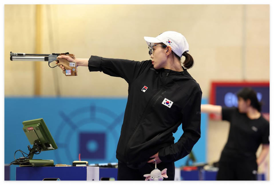 대한민국 올림픽 간판스타 김예지선수의 한손사격 이미지입니다. 멋져요.