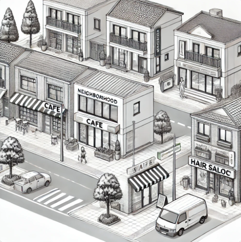 주거지 인근에 위치하며, 주민들에게 직접적인 생활 편의를 제공하는 것이 목적입니다. 주로 저층 건물에 위치하고, 소규모 업종을 운영하는 경우가 대부분입니다.