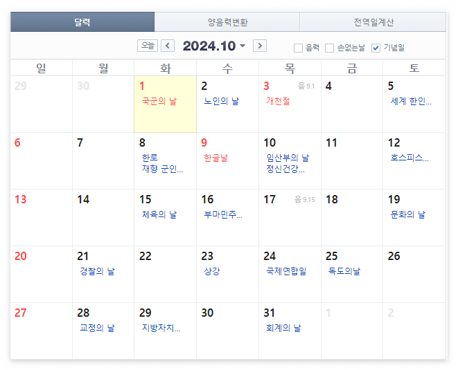 2024년 10월 1일이 임시공휴일이 되면서