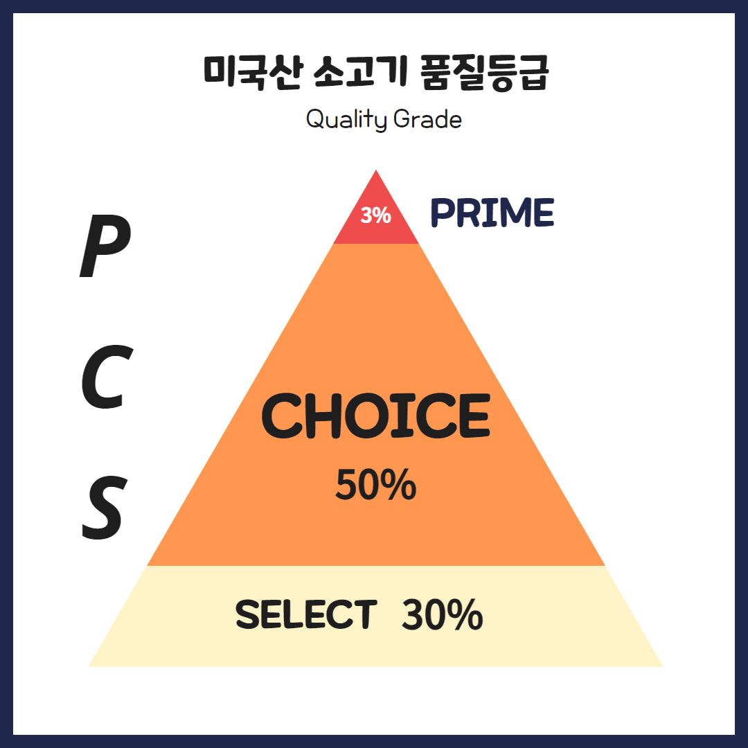 미국산 소고기 등급은 'USDA(미국 농무부) United States Department of Agriculture'에서 관리하며, 세계적으로 통용되는 기준 중 하나입니다.