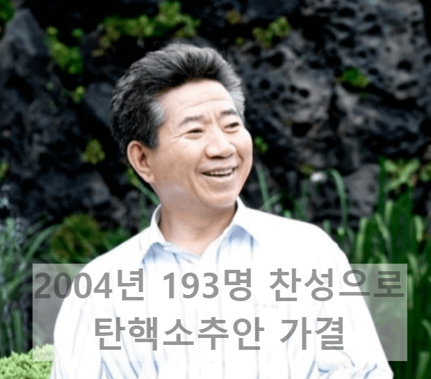 당시 야당이었던 한나라당과 새천년민주당은 국회에서 탄핵 소추안을 발의했고, 국회의원 193명의 찬성으로 탄핵안이 통과되었습니다.